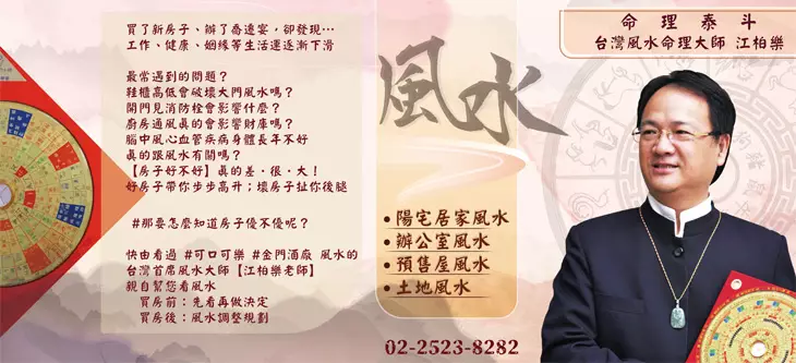 在命理與風水領域享有盛名的江柏樂老師,曾任中華民國現代易經風水協會理事長,