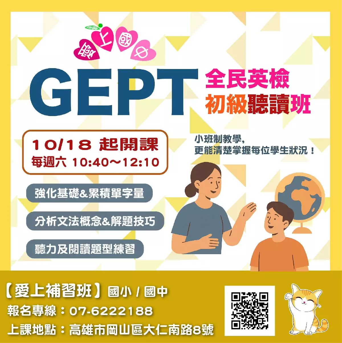 #全民英檢 #初級班 #英檢課程 #GEPT #英檢聽讀班 #小班制教學 #岡山補習班 #免費體驗課 #限時免費